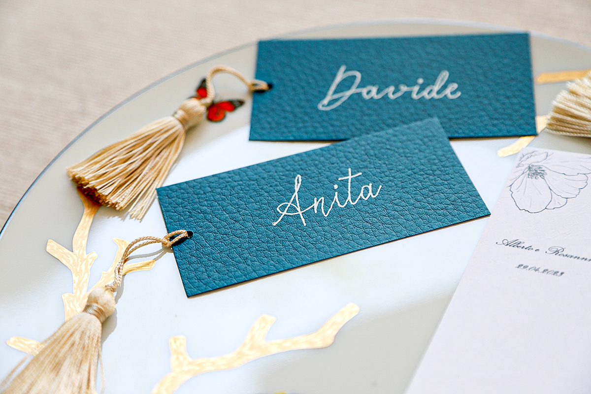 La carta è la scelta più classica ed elegante per i segnaposto, ma la differenza sta nella qualità dei materiali e nella lavorazione artigianale.