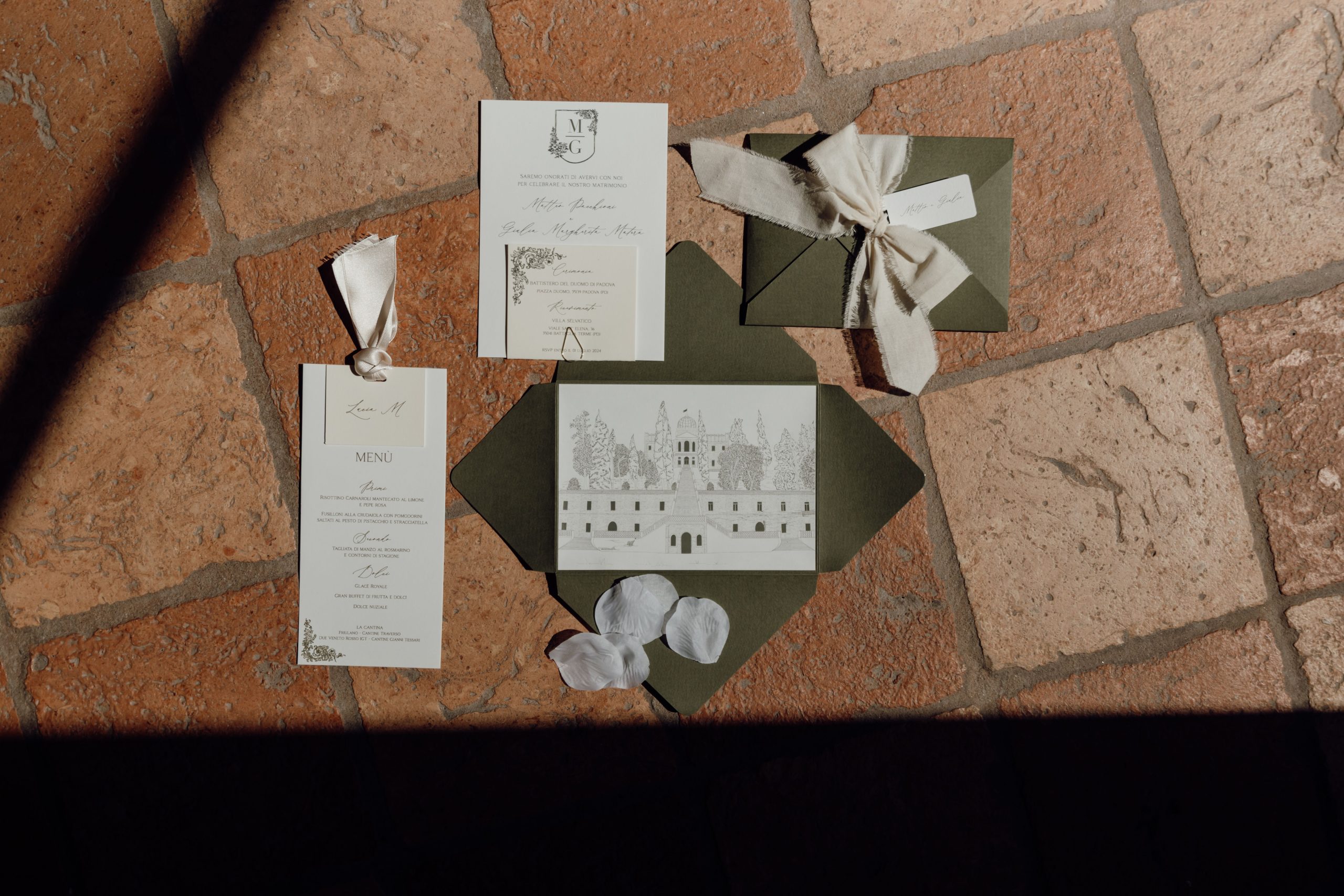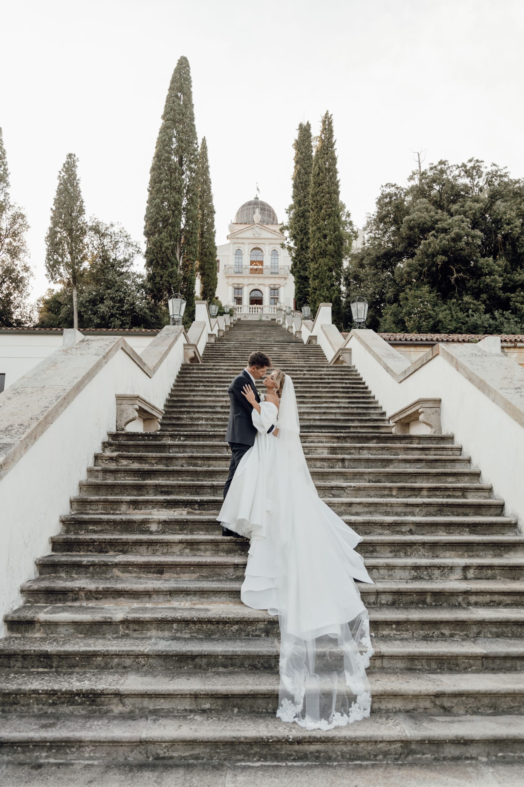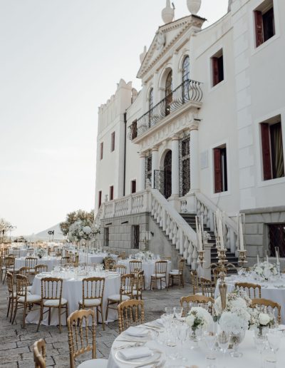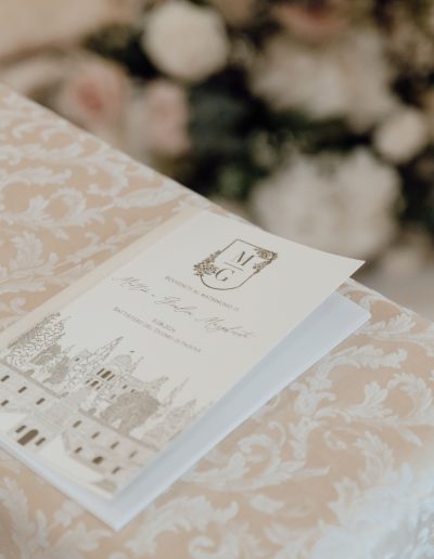 Un matrimonio da sogno tra eleganza e romanticismo. Matteo e Giulia hanno scelto la splendida Villa Selvatico, con la sua maestosa scalinata, come cornice perfetta per il loro grande giorno. Una palette raffinata di bianco e oro ha avvolto ogni dettaglio, creando un’atmosfera senza tempo, ricca di luce e sofisticatezza. Dai delicati inviti illustrati a mano fino ai dettagli della mise en place, ogni elemento ha raccontato la loro storia d’amore con classe e armonia. Un matrimonio che incanta e ispira, perfetto per chi sogna un’eleganza senza tempo.
