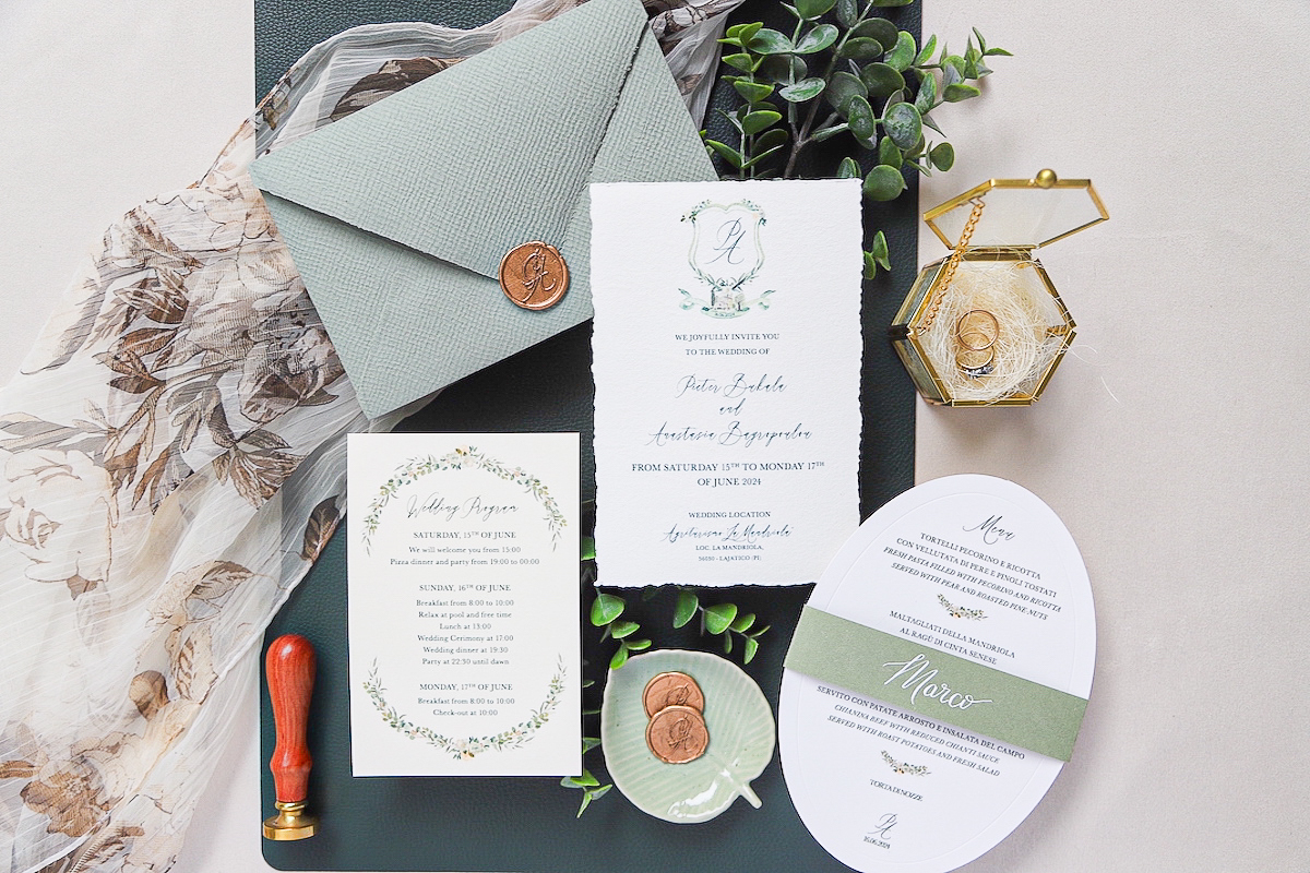 Nel giorno del vostro matrimonio, ogni dettaglio parla di voi. Racconta la vostra storia, il vostro stile, il vostro amore. Se immaginate un’atmosfera avvolgente, sofisticata e al tempo stesso naturale, lasciatevi ispirare da un coordinato grafico dai toni del verde e dalle delicate sfumature dell’acquerello.